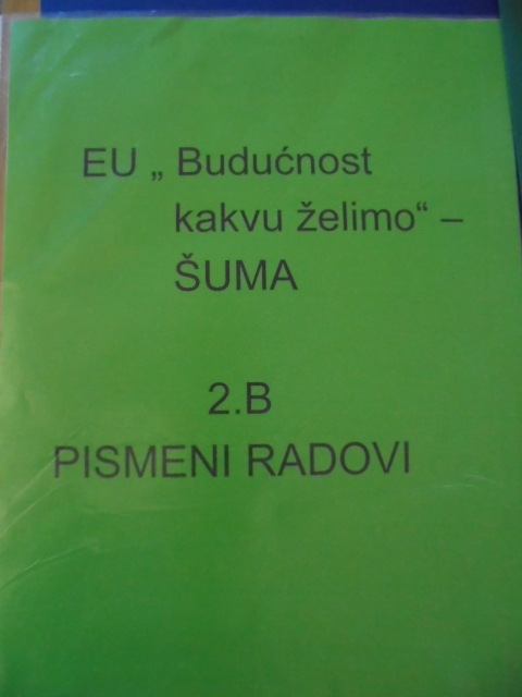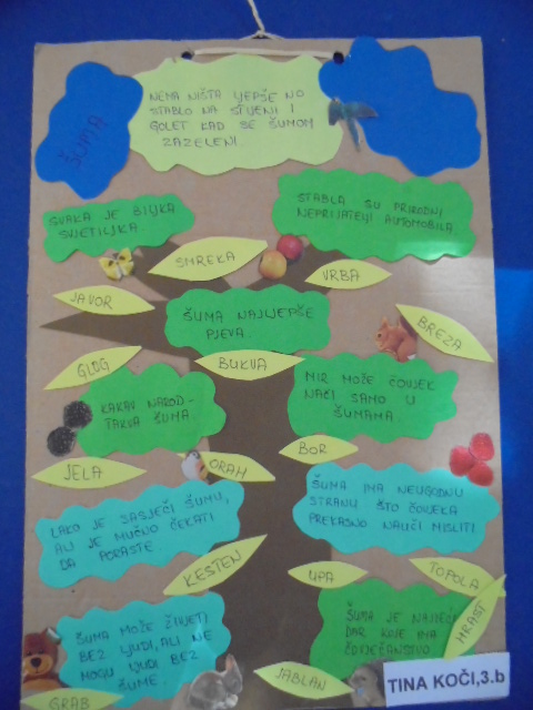 Učenici 3.a su mi ispričali što im je bilo najljepše. Sven je rekao kako se sjajno zabavljao jer je crtao i zapamtio je kako su igrali igru Križić – kružić kredom u boji na zemlji. Ana je pričala o tome kako su skupljali svašta o šumi u različitim godišnjim dobima, fotografirali su drveće i izrezivali materijale iz novina koje su zatim slagali u mape – svaki učenik imao je svoju mapu. Domagoj se sjeća kako su na likovnom crtali svašta vezano uz prirodu. On je crtao cvrčka dok su drugi dobili neke druge zadatke. Poruka tog rada je bila da svijet ne bi bio isti bez najmanje tratinčice ili životinjice. Eleni se najviše svidjelo kad su pisali haiku poeziju. Ona je napisala pjesmicu o pčelama koje prenose med i o slatkoj tvornici. Prikupili su radove i stavili ih na pano. Dora je za projekt napisala pjesmicu Taj jedan list mali s kojom je sudjelovala na festivalu dječjeg stvaralaštva Ususret proljeću jer je njena pjesma bila uglazbljena. Učiteljica Ankica Ježabek je također uživala u radu s djecom. Istaknula je kako se njoj najviše svidjela ekološka nota projekta i to je povezala s ekološkom skupinom koju vodi. Kako je originalni naziv projekta Budućnost kakvu želimo – odlučili su staviti naglasak na šume jer bez njih ne bi ni bilo budućnosti. Učiteljica je rekla i to da su učenici sjajno reagirali na cijeli projekt, marljivo su radili, pripremali i donosili sve što su trebali.